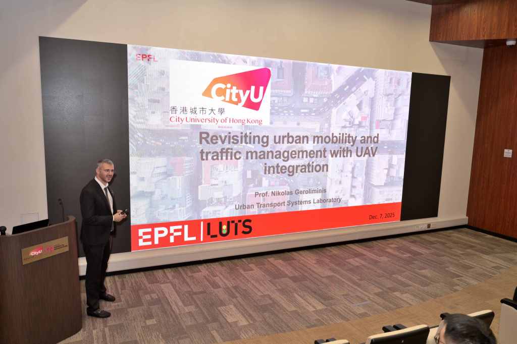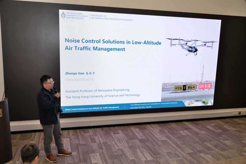 The workshop featured four pivotal presentations focusing on traffic management and environmental sustainability. Prof. Nikolas Geroliminis (EPFL) opened the technical sessions by revisiting urban mobility frameworks through the lens of UAV integration. This was followed by Prof. Lishuai Li (CityUHK), who discussed the complexities of network design and airspace management for Unmanned Aircraft Systems. Shifting the focus to noise and environmental impact, Prof. Lourenco Tercio Lima Pereira (TU Delft) presented research on the aeroacoustics of low-altitude vehicles, and Prof. Zhenyu Gao (HKUST) concluded the sessions by proposing noise control solutions for low-altitude air traffic management.